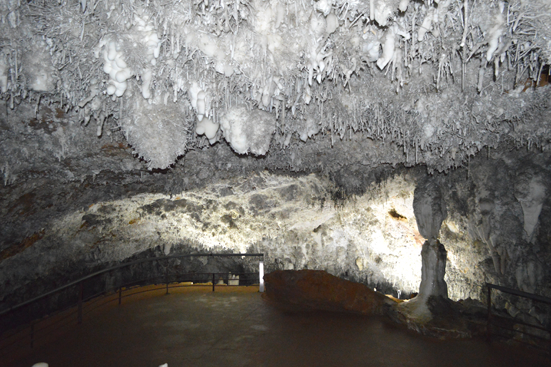 Acceder a una cueva que en parte se comunica con una mina ya es excitante, pero a medida que vamos conociendo los detalles y las perlas geológicas de su interior no podemos dejar de sorprendernos. Lo que más nos llamó la atención son las famosas formaciones excéntricas de la cueva. ¿Y qué es eso? Pues un tipo de estalactitas que por alguna razón no del todo clara hasta el día de hoy, no crecen en sentido vertical. Es lo que la lógica de la gravedad más el goteo constante durante años y años (miles acaso) debería producir. Pues no es así en esta cueva. Algunas de las estalactitas de El Soplao han crecido en otras direcciones, algunas hasta yuxtapuestas, desafiando toda lógica. Parecen las raíces de una patata germinada en un recipiente de agua.